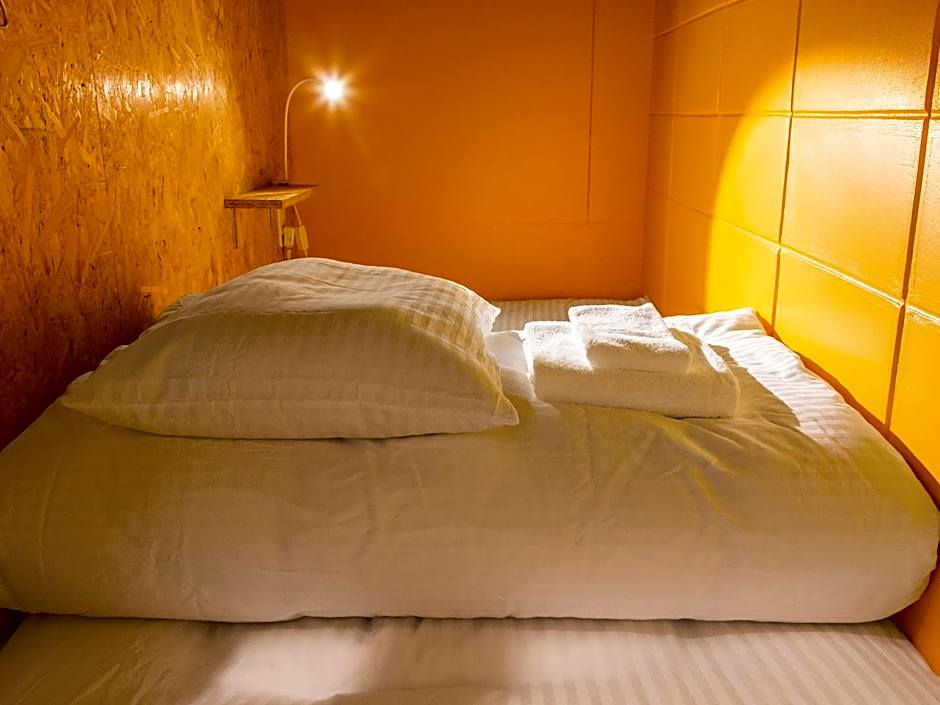 This bed in dormitory features a microwave, air conditioning and stovetop.